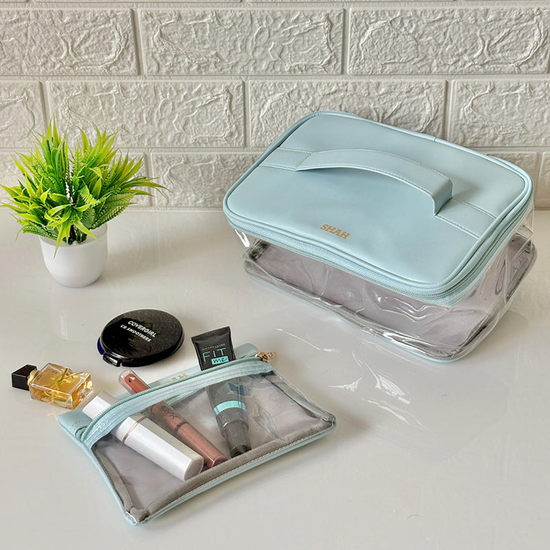 The most awesome lightweight travel accessories. This vanity Pouch organizer is crafted using a combination of PVC and luxurious faux leather, it even features a sleek inner pouch!